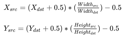 第一个公式,目标矩阵到源矩阵的坐标映射: