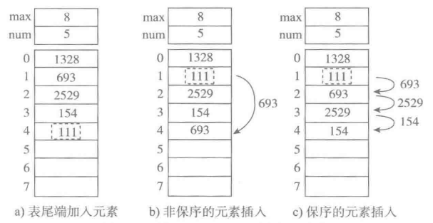 c. 保序的元素加入,时间复杂度为O(n)。