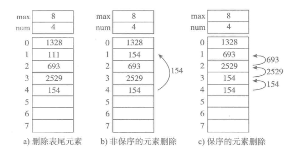 c. 保序的元素删除,时间复杂度为O(n)。